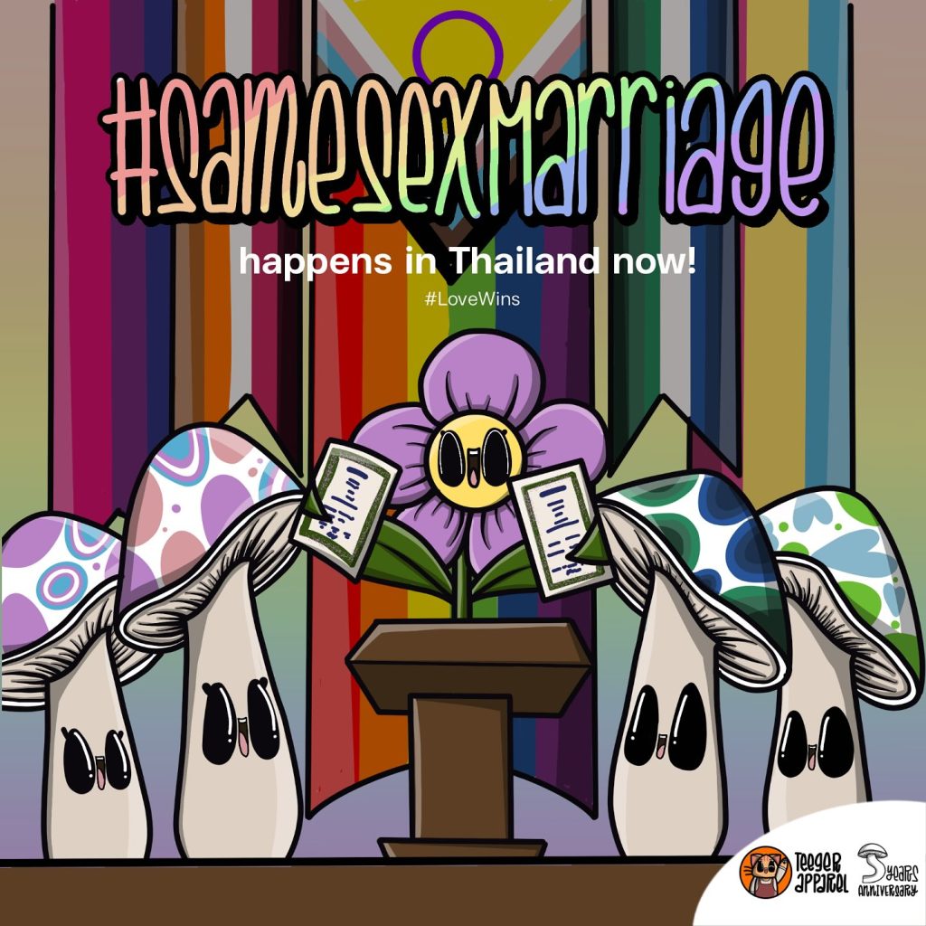 Congratulation to all queer couples in Thailand, because same-sex marriage has become effective as actual law from today onwards (23rd January), we are one of trans non-binary & lesbian owned small artist business, we need celebrate for creating our important history with LGBTQIAN+ community in Thailand.